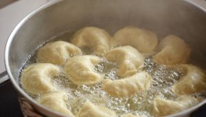 - Кидай вареники у киплячу підсолену воду. Як тільки спливуть — варити ще 3–4 хвилини. Обережно дістань шумівкою і полий розтопленим маслом, щоб не злиплися.